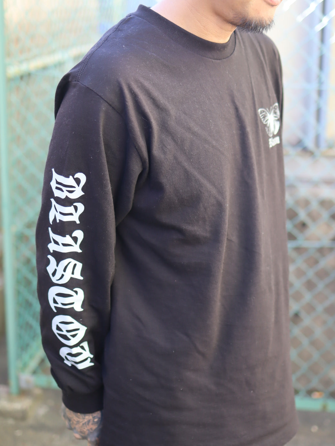 フロントには繊細なバタフライモチーフとロゴを配置し、バックにはダークでアート性の高い背中には、タトゥーのような緻密なタッチで描かれたスカルのグラフィックを大きくプリントプリントしたBLASTOUらしいダークな世界観を、コーチジャケットに落とし込んだ一着。