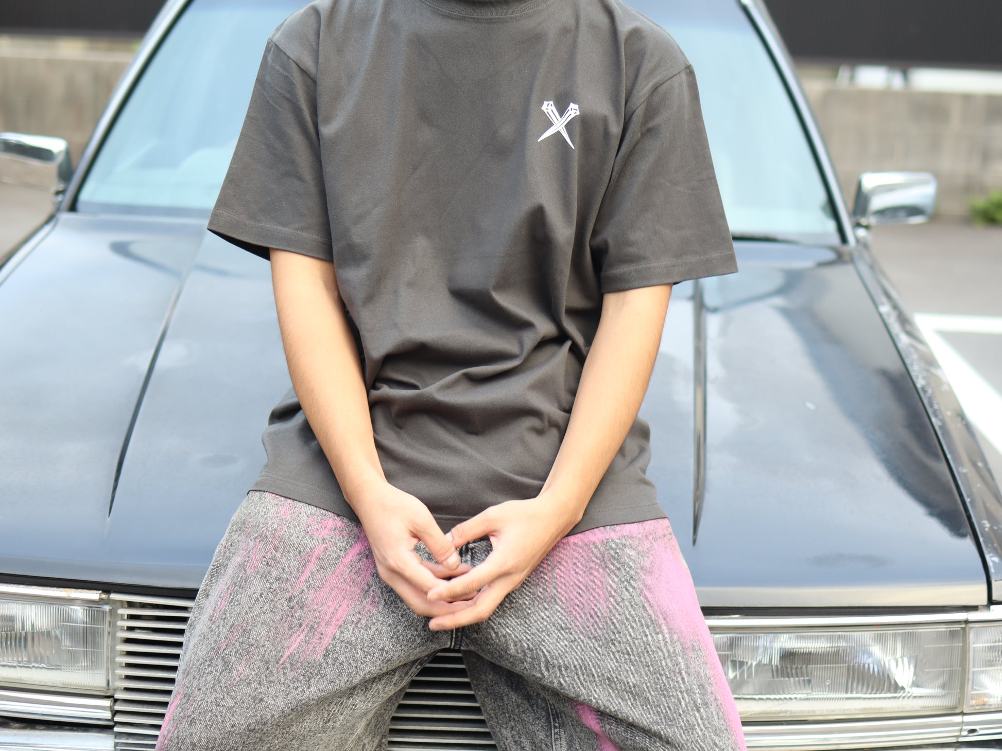 単体でもインパクト十分なので、デニム+スニーカーでタトゥーTシャツらしいラフな雰囲気に。